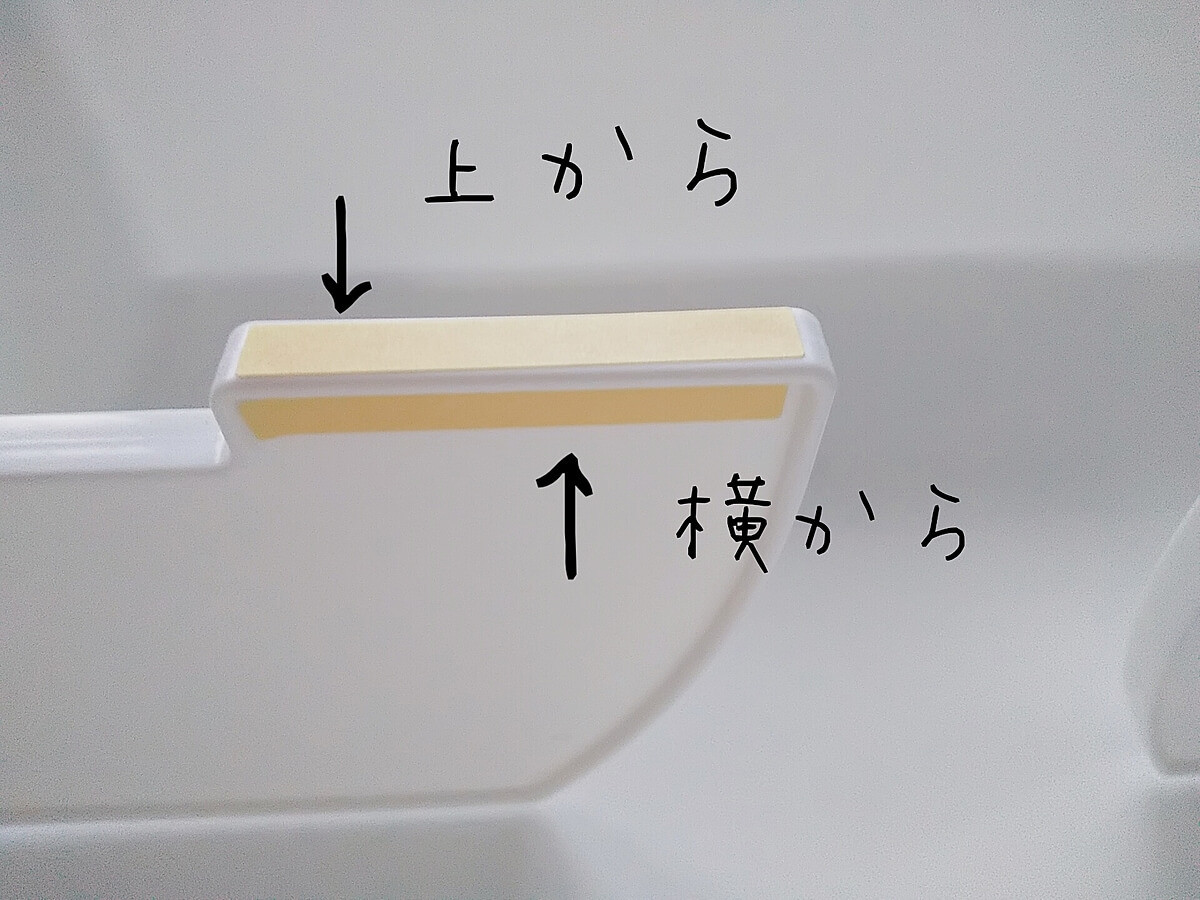 シールは、仕切りの上と横の両方に貼りつけ可能。引き出しが低い位置にある場合、インデックスが上にあると見やすくて便利ですね。
