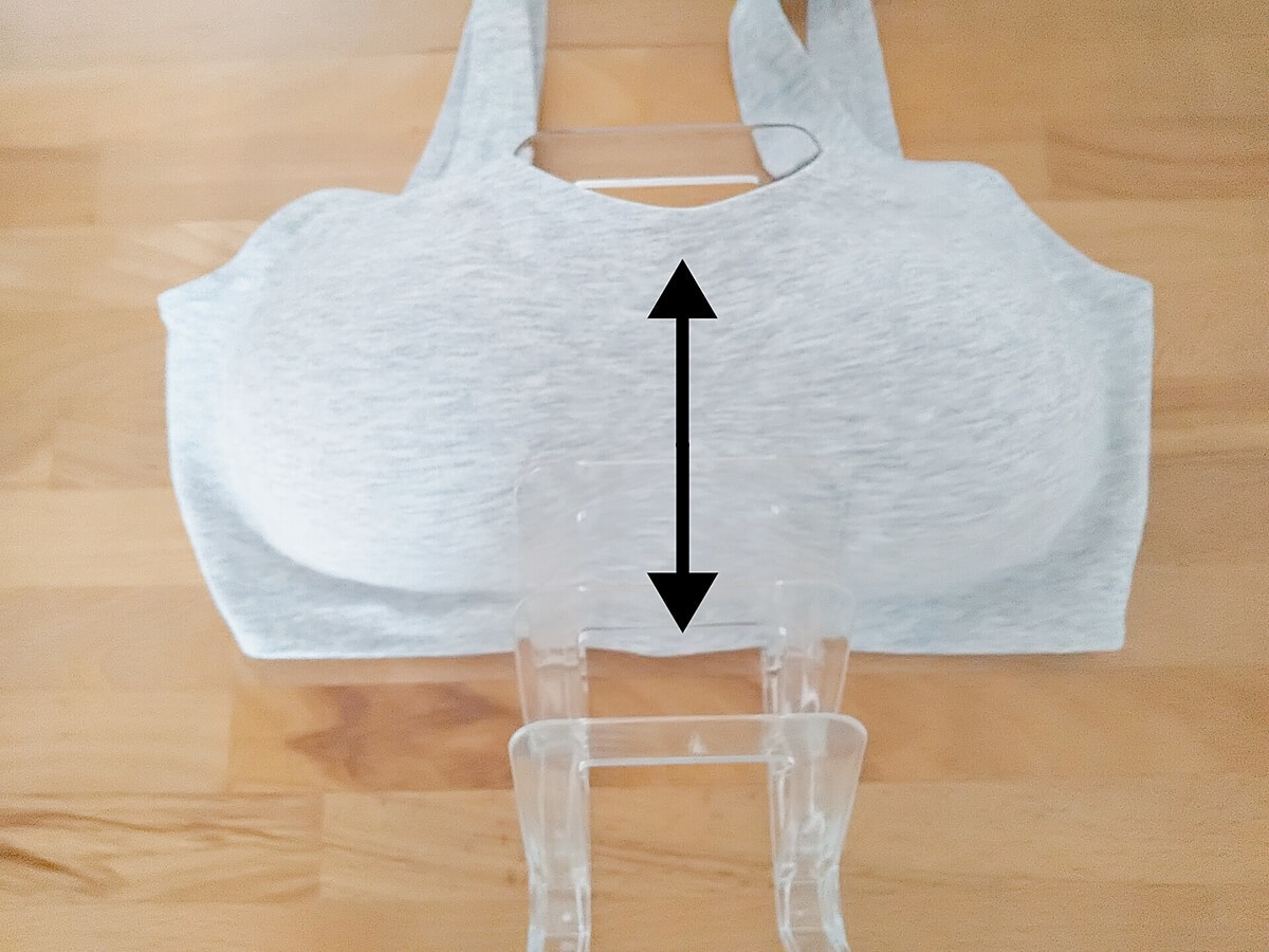 スポブラタイプは中央部分に高さがあるので、仕切りに引っ掛からずに出し入れできます。写真の商品は、ユニクロのワイヤレスブラ(コットン・リラックス)。