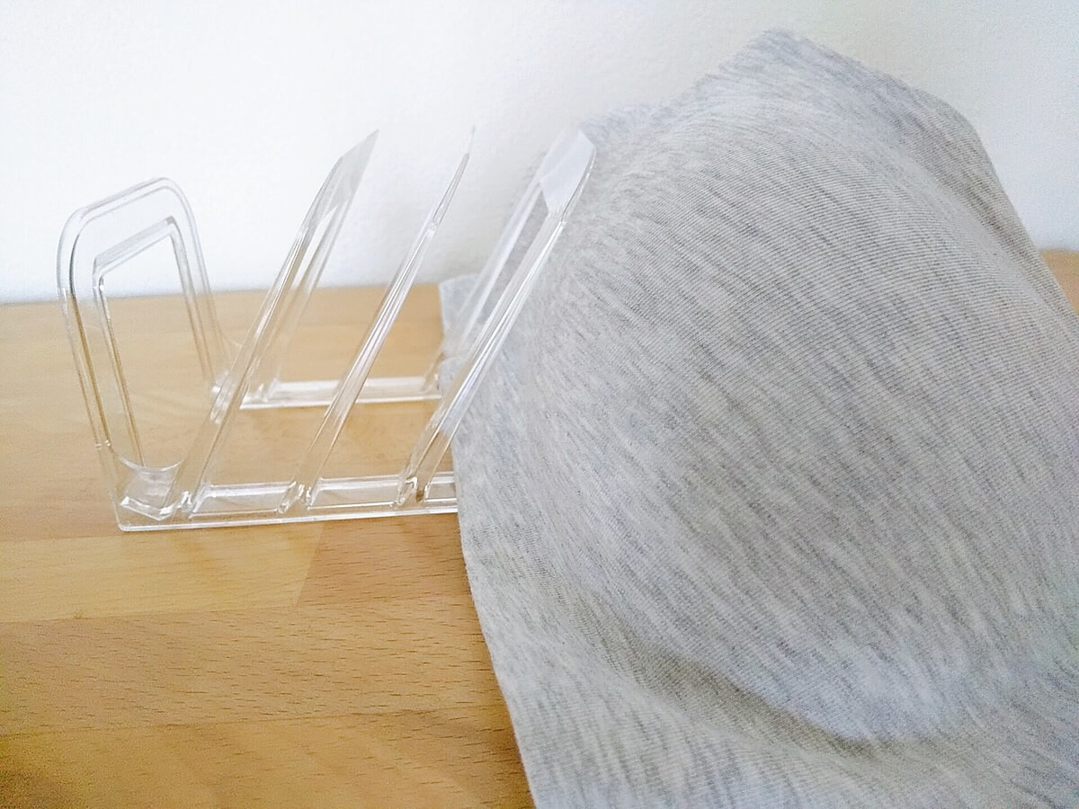 私は引き出しに入れていますが、横にはみ出たり、奥の方でつぶされていたりと、気づいたら残念な状態になっています。この状態で放置すると型崩れを起こすし、何より出し入れしにくい!