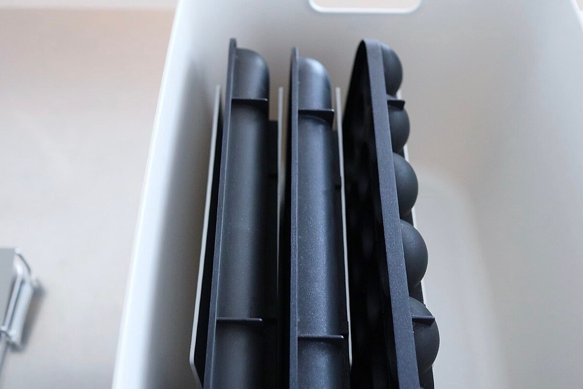 プレートそれぞれは、たまにしか使わないものなので、フタつきのボックスに入っているとホコリの面でも安心。ごちゃつきがちな付属品も箱に入れてしまえばスッキリします。