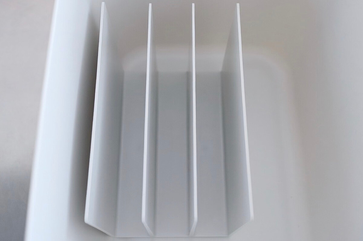 中には仕切りを入れることで使いやすい縦収納にしています。これならいろいろなところから取り出す必要がなく使う時にもラクです。