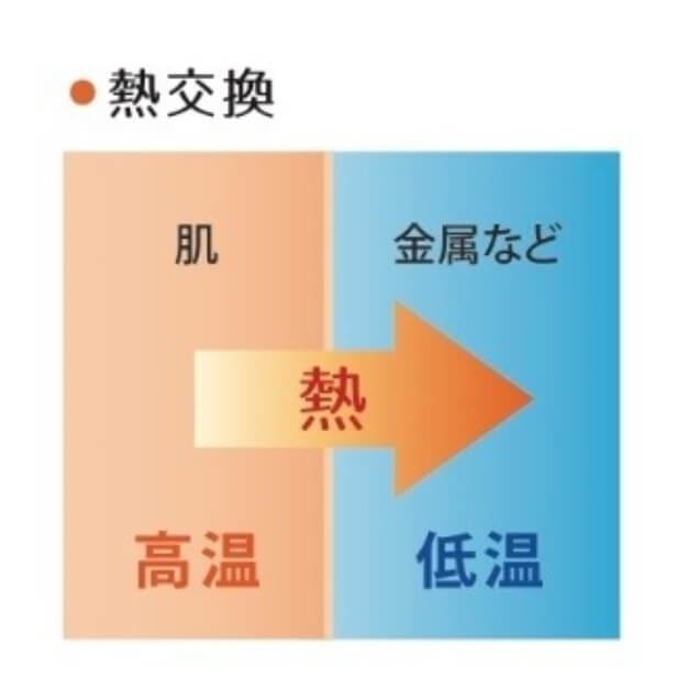 冷え切った汗拭きシートは温度が低いので、肌に触れたとき、肌の熱が肌より低い温度のものに移動する、「熱交換」という現象が起きて、涼しく感じます。