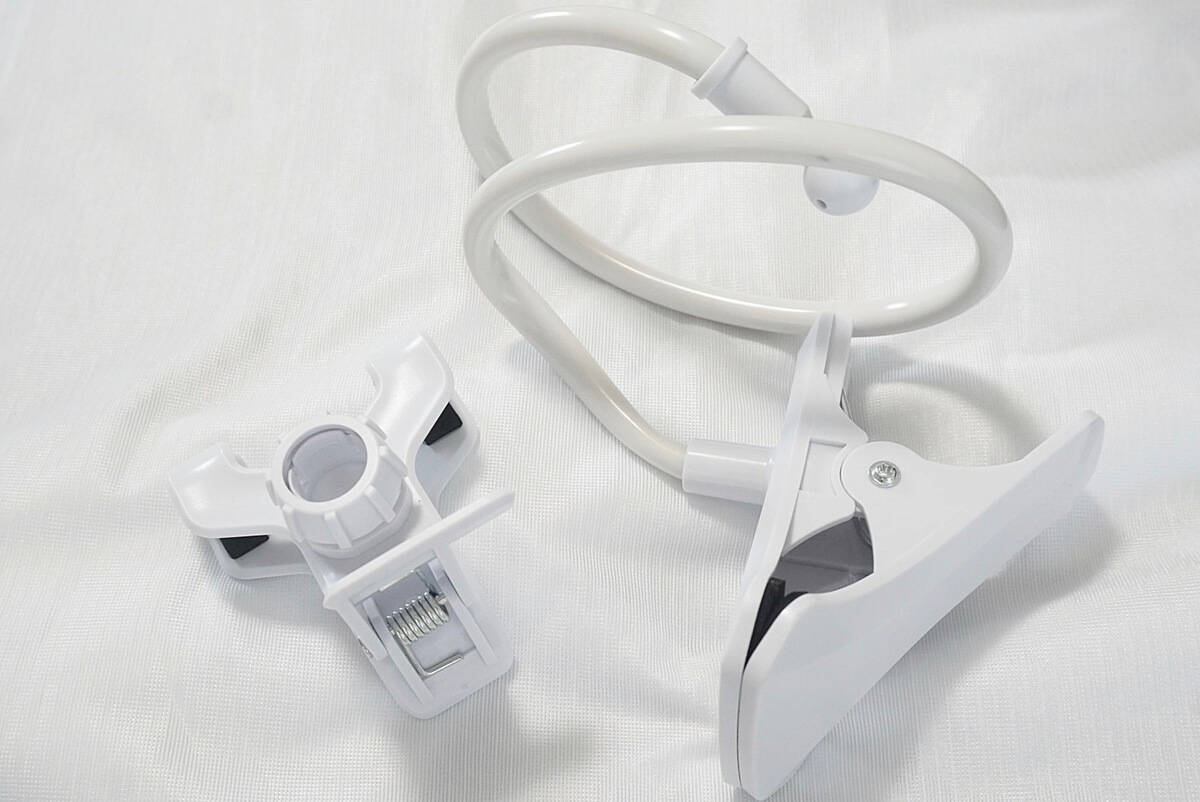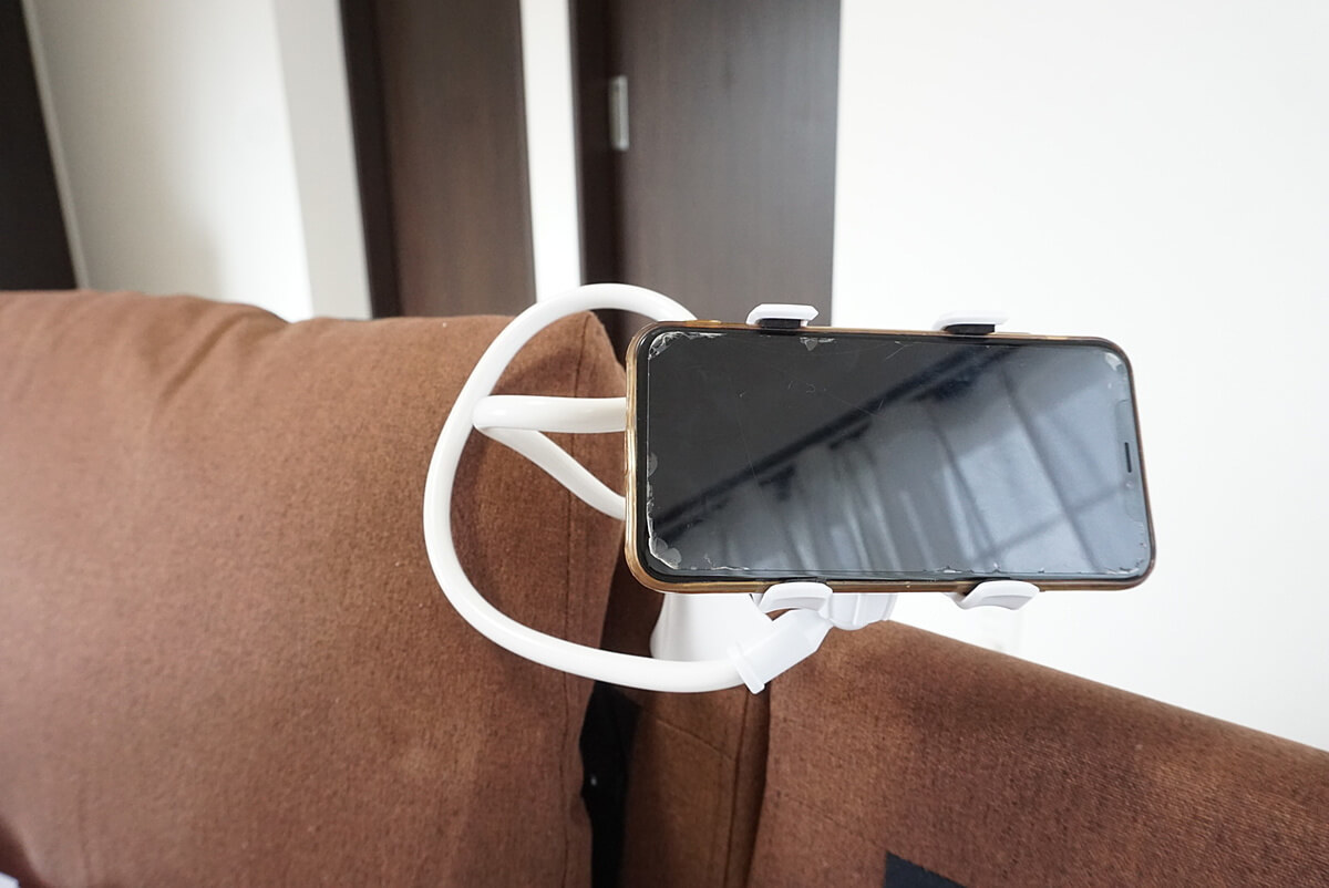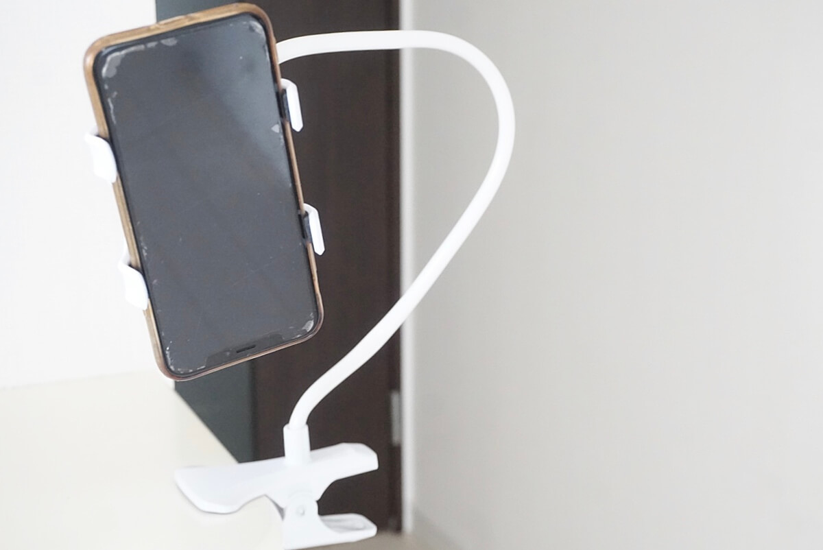 自由にアームを折り曲げて、スマートフォンを机などに固定し、ハンズフリーで楽しめるスマホホルダーです。