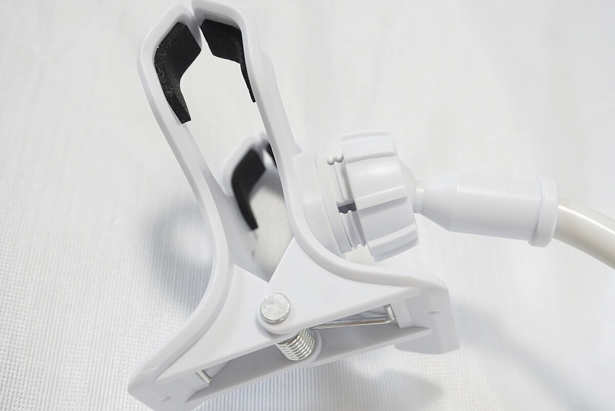 アームにプラスチックナットを通したら、スマホクリップアームの先端を付けプラスチックナットを回して固定します。