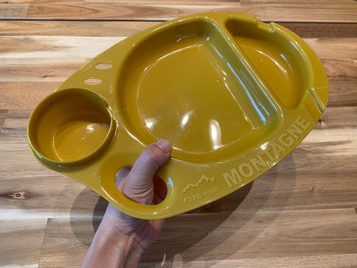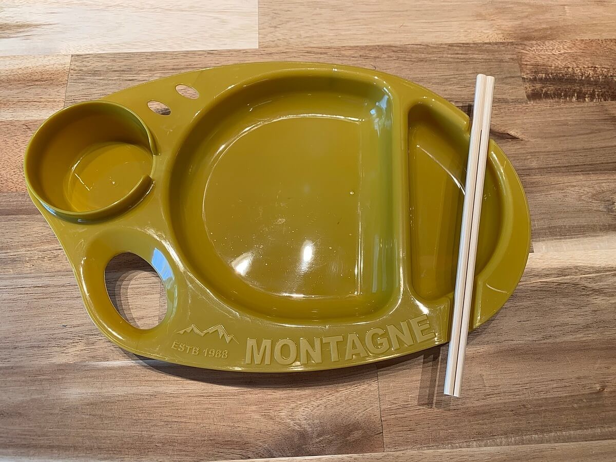 セリアの大人気「MONTAGNE(モンターニュ)」のBBQトレーは、お皿とドリンクホルダー、さらに箸置きまでが一体化した便利なプレートです。