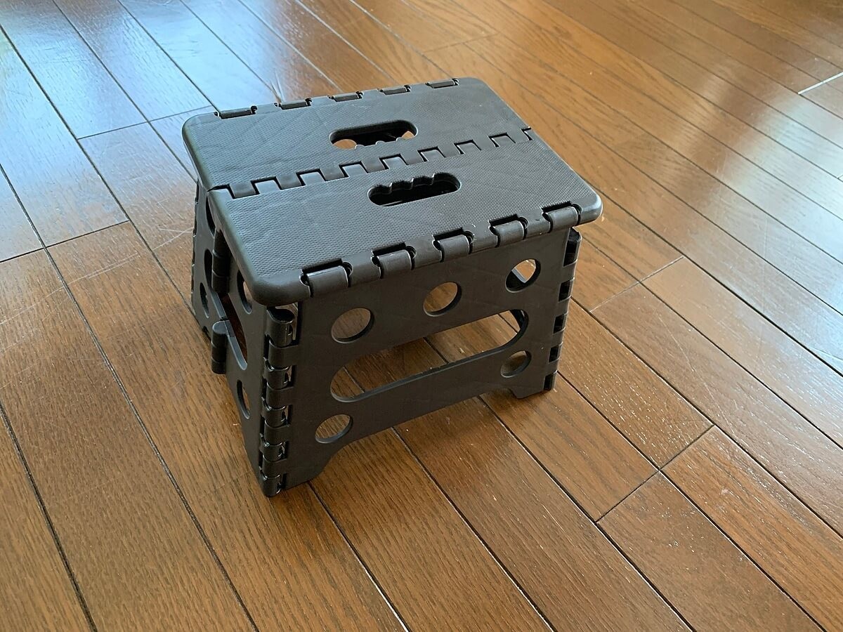 一見「子ども用!?」と思ってしまうほどのサイズ感ですが、静止耐荷重は約50kgなので大人でも使用できました。