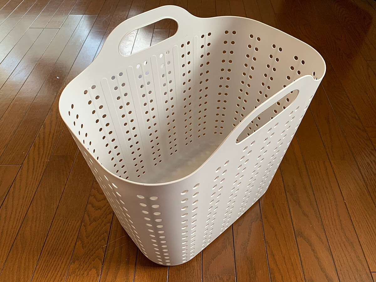 デザイン性の高いワイヤーバスケットも良いですが、衣類が引っかかってしまうなどのトラブルを避けたかったので、我が家はニトリのシームレスなランドリーバスケットボルカに決定。