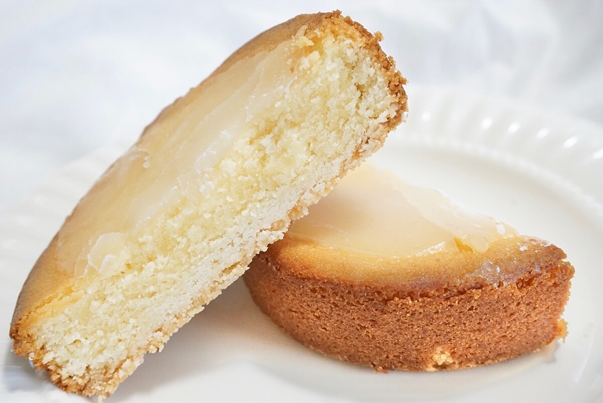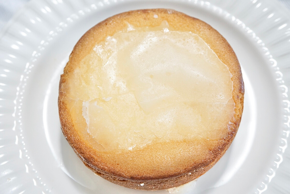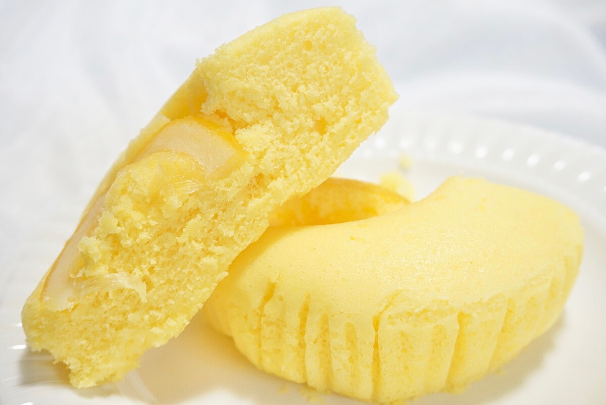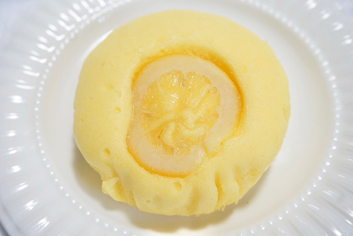 スライスレモンが1枚乗った、レモネード風味のしっとり食感の蒸しケーキです。