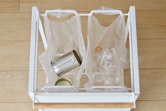 本来は、ポリ袋の持ち手をひっかけて分別できるというゴミ箱なんです。