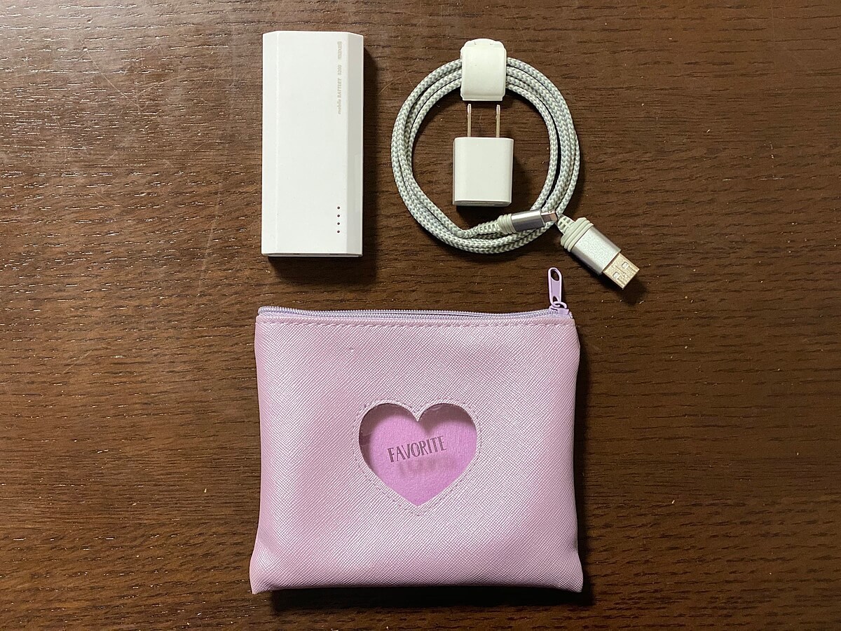 今や必須アイテムになった携帯の充電器。バッグに入れて持ち歩く人も多いのではないでしょうか?私は充電器本体とケーブルを別々にポーチにしまっています。さらにコンセントも入れているので、いつでもどこでも充電できます!
