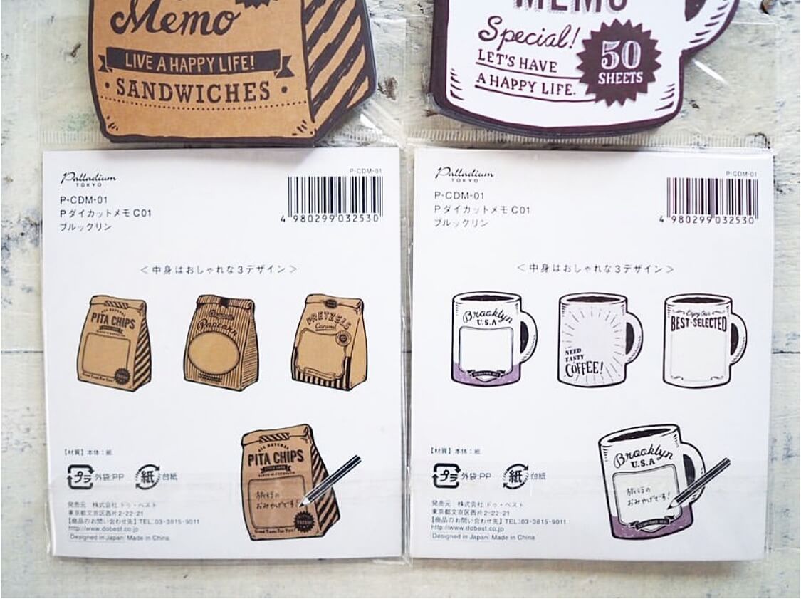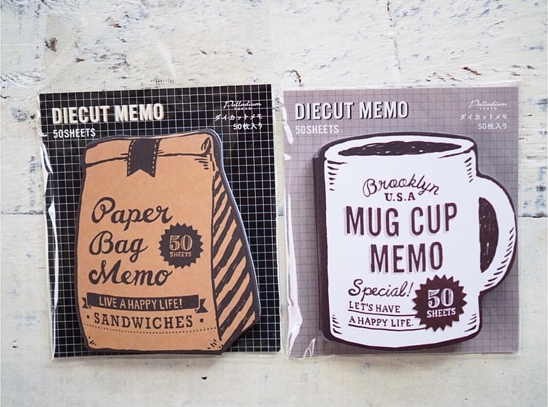 続いてご紹介するのは、紙袋とマグカップ柄がおしゃれな「ダイカットメモ ブルックリン」です。