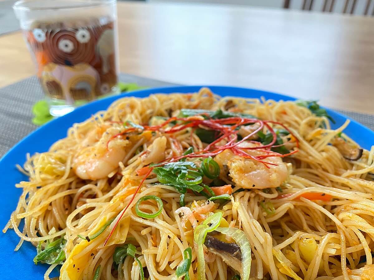 海老とオクラのシンガポール風焼きビーフン