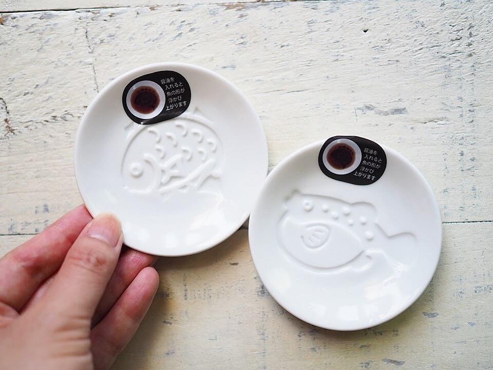 ▲「醤油皿 魚」 100円 (税抜)まず最初にご紹介するのはセリア新商品より「醤油皿 魚」です。