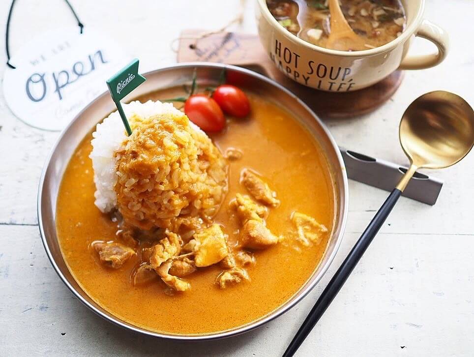 フチがあるので、写真のようにカレーなど汁気のあるメニューにも使い勝手がいいんです。
