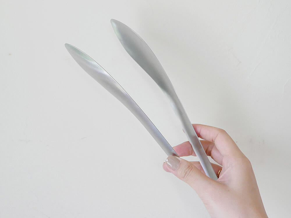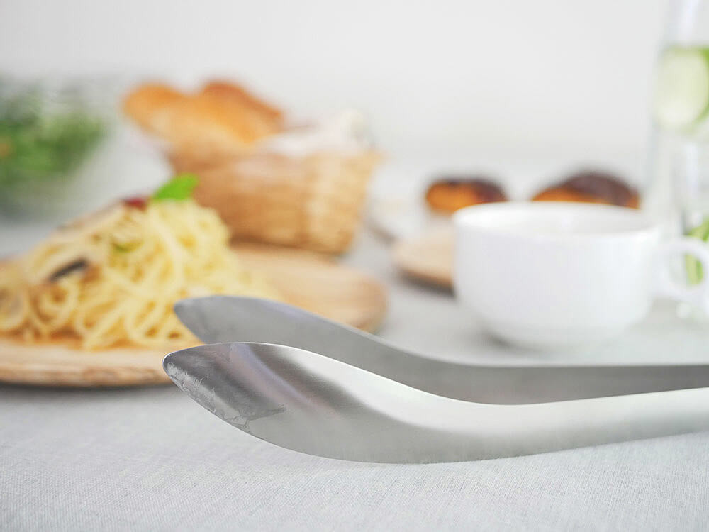 そこで、leye(レイエ)のもりつけトングなら、盛り付け、取り分け、調理中も手放せない、艶やかなステンレス一体成型が美しい“使いたくなるトング”をご紹介します。