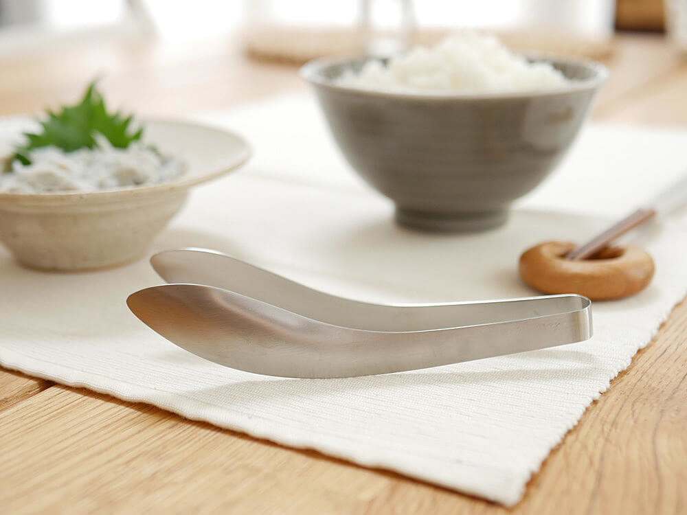 まるで指先でつまむ感覚で3食の“おとも”にピッタリなトングです。