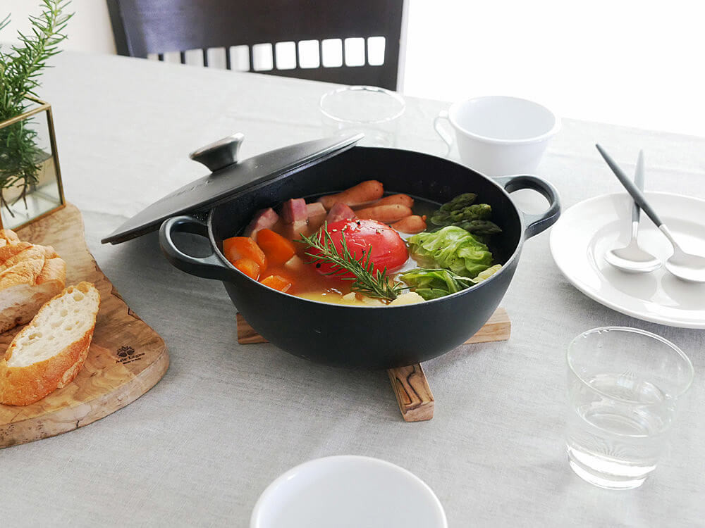 厚みもありしっかり安定感もあるので、たっぷりお鍋の際も安心です。