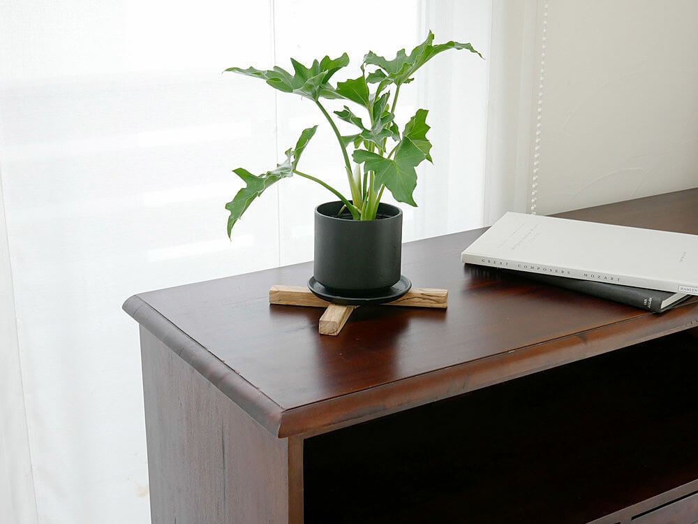 鍋やお皿だけでなく観葉植物を置くのも素敵ですね。天然素材の鍋敷きなので、グリーンとの相性も抜群♪