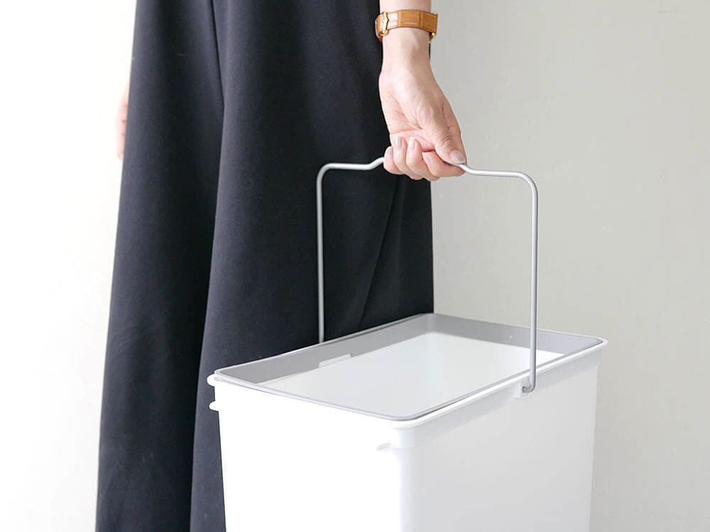 ポリプロピレン製なので軽く、また金属製の持ち手が付いているので、持ち運びもらくらく♪瓶や缶をそのまま捨てに持っていけるのは便利ですよね。