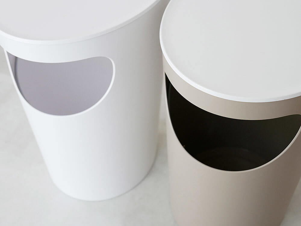 やわらかなフォルムとカラーで優しくインテリアに馴染むのに、ゴミ箱にも収納にもサイドテーブルにもなっちゃう、生活に馴染みすぎるアイテムなんです。