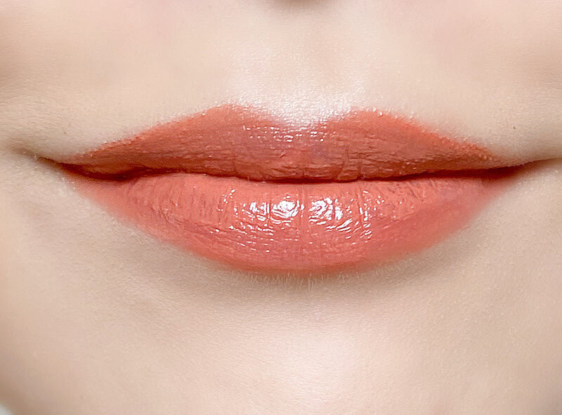 手の甲に乗せてみると、少しピンク味も感じられるオレンジベージュといったところでしょうか。