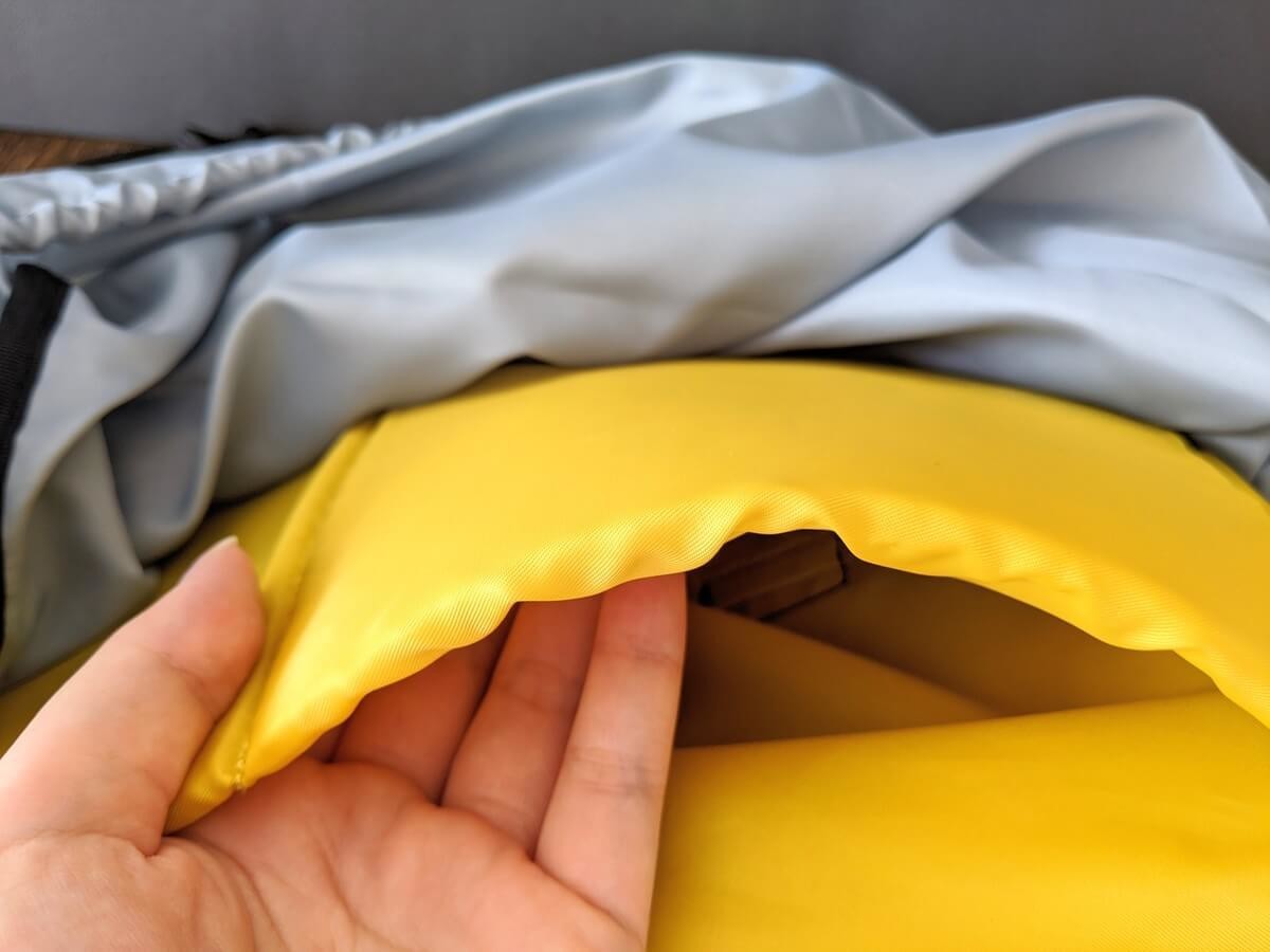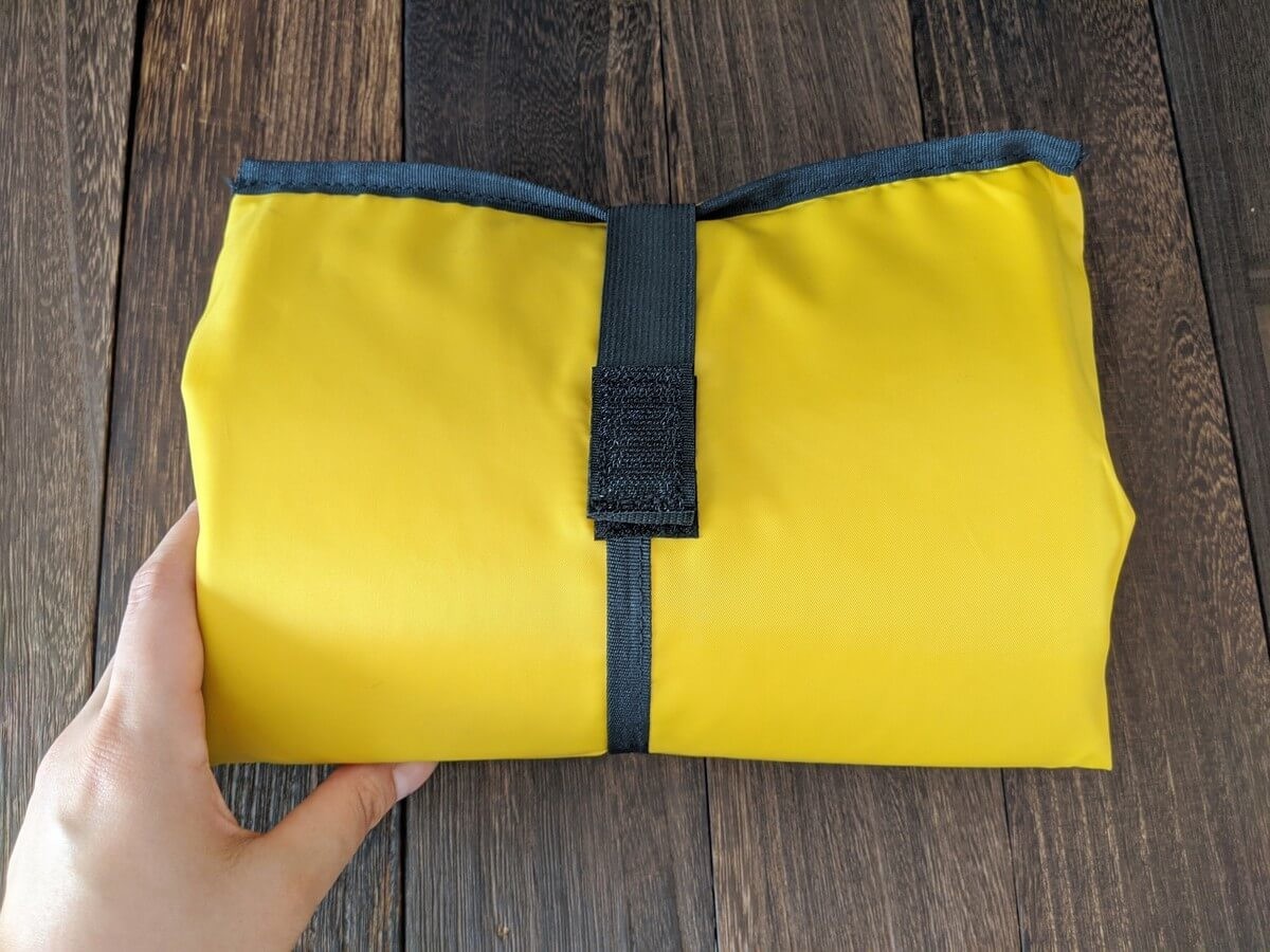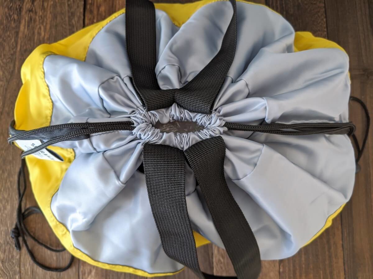 さらに2つ目の注目ポイントは、容量に合わせて大きさを2段階調節できること。 こちらは荷物が少ないときの状態です。