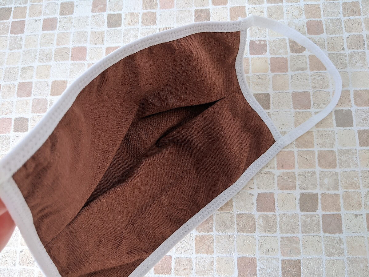 こちらが裏側です。 プリーツ部分にゆとりがあるため、会話していても呼吸がしやすく感じました。