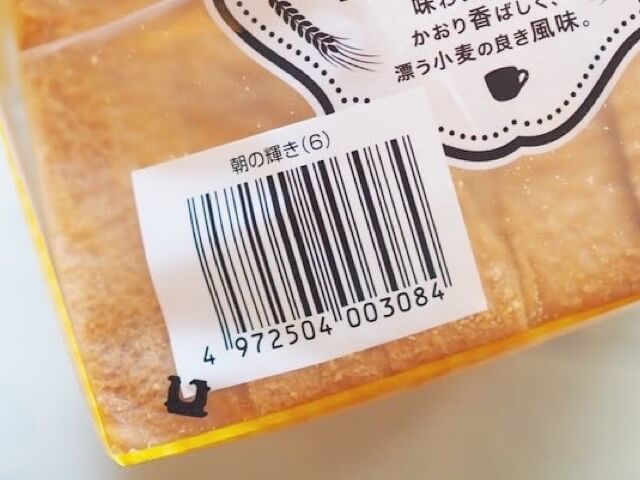 底面のバーコード部分をよーく見ると、左下に食パンの袋を止めるアレ(バッグ・クロージャー)のシルエットが!