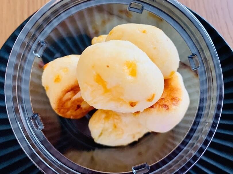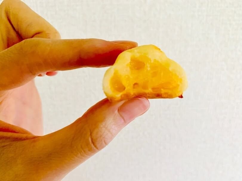 1つは約4cmくらいの大きさで、一口でぱくっといけちゃうサイズです。持った感じもプニプニもちもち。なんて可愛いんだ~!ああ、持ってるそばからチーズのいい香りが……。