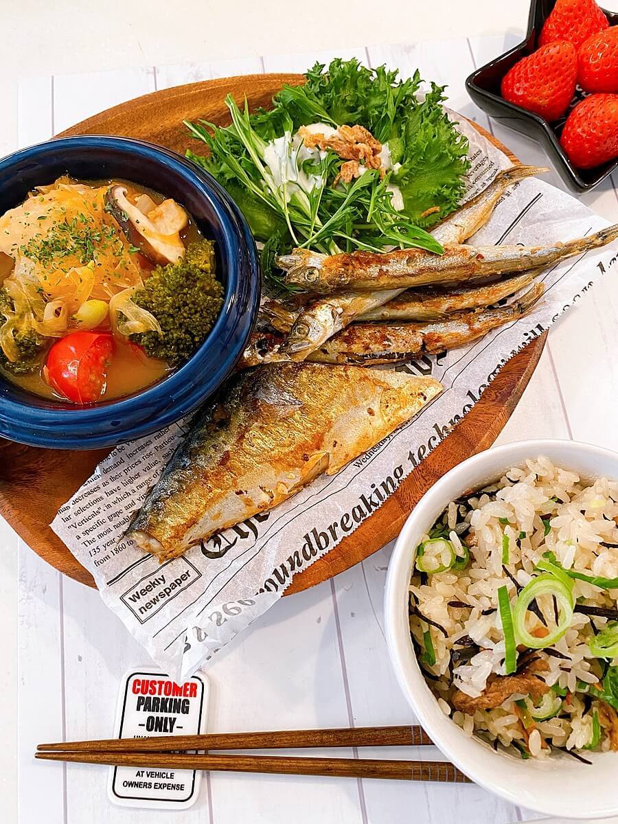 この日のメニューは、焼サバ定食にひじきごはんです。