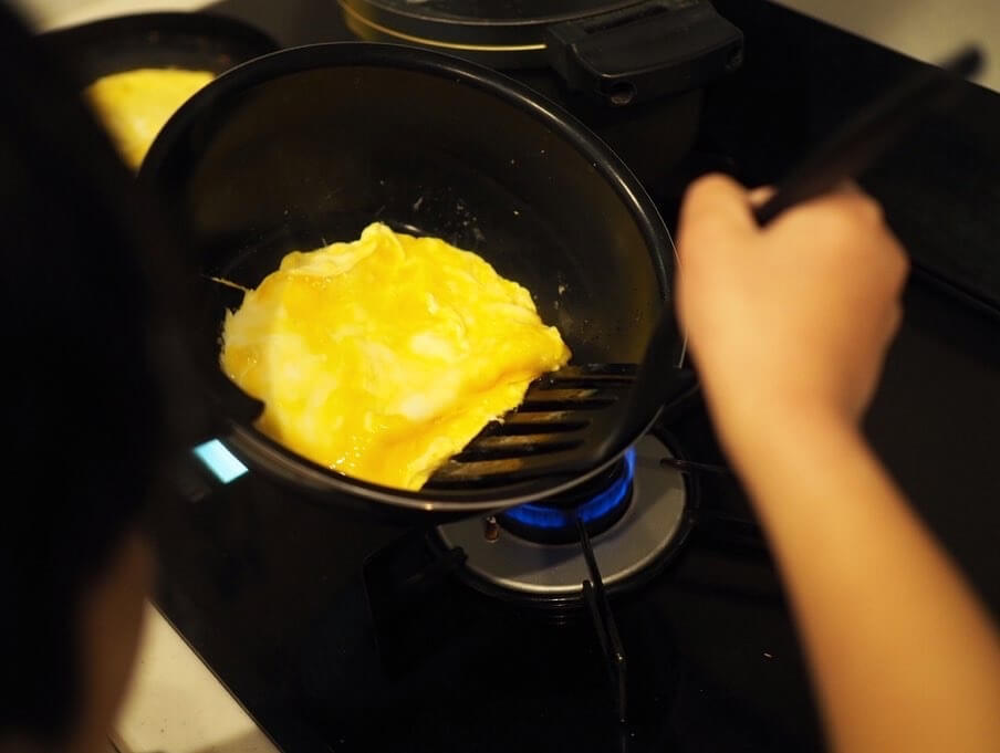 オムライス用の薄焼き卵もレンジで作ればフライパン不要で作れますね。