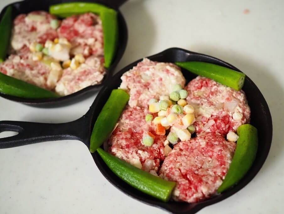 玉ねぎを炒めず、お肉もスプーンで混ぜて、スキレットグリル焼きでひっくり返しもしない、時短と手抜きを極限まで追求した作り方です(笑)!