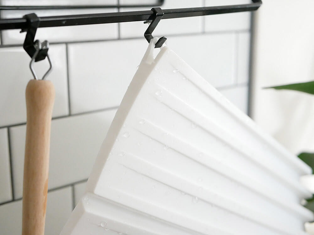 本体は折り畳める仕様なので、洗った後の水切りカゴの中でも自由自在。