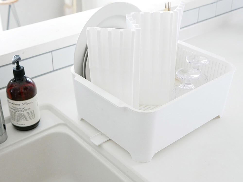 必要な時にサッと出して使える手軽さが魅力の折り畳める水切りトレー。水切りカゴを置くスペースがない狭いキッチンや、洗い物が多いときのサブの水切りに最適です。