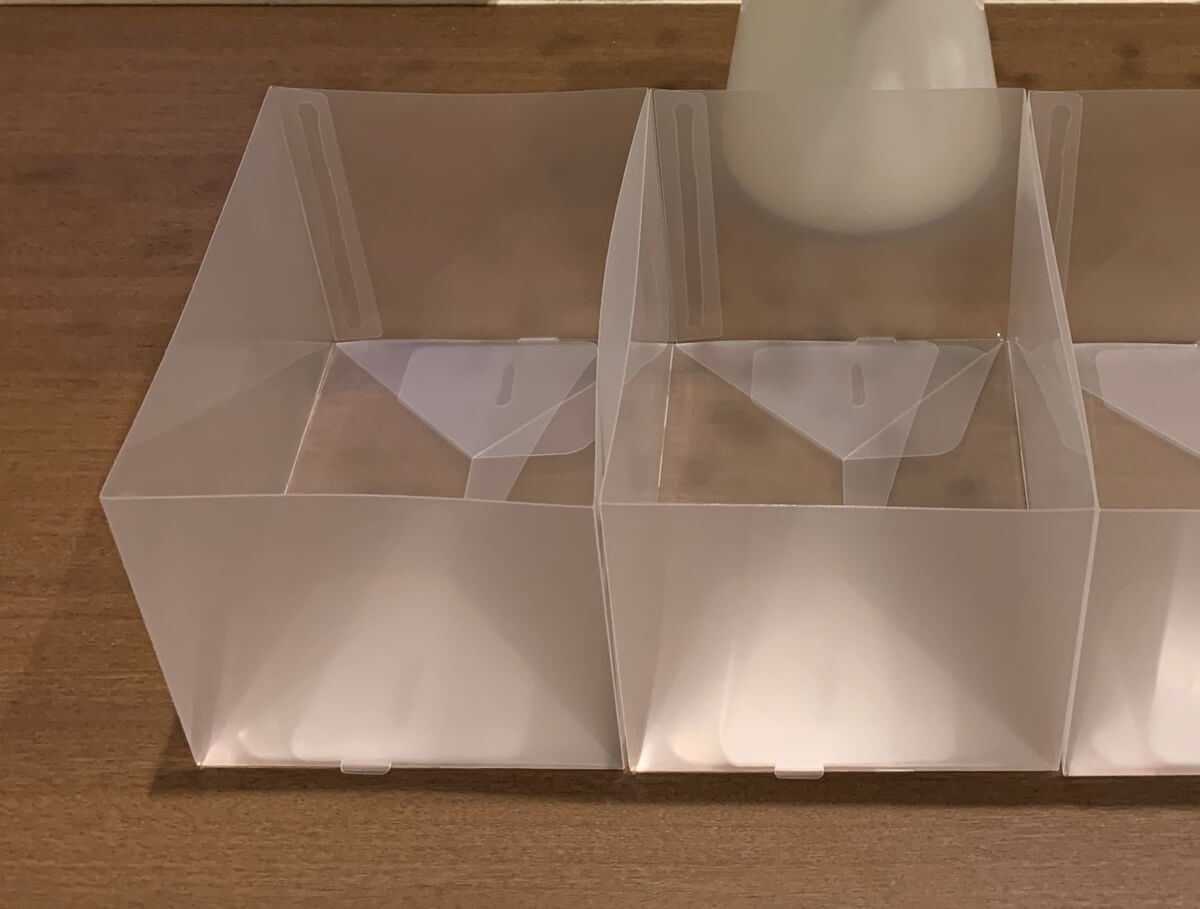 でも簡単に組み立てられます。ケーキの箱の要領です。