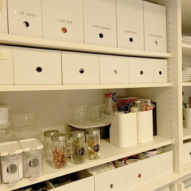 磯野家のキッチンパントリーはポリプロピレンファイルボックスだらけです。