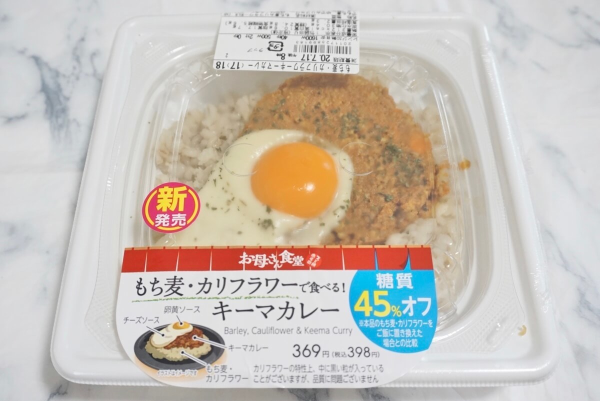 ファミマで買える「もち麦・カリフラワーで食べる!キーマカレー」を紹介しました。