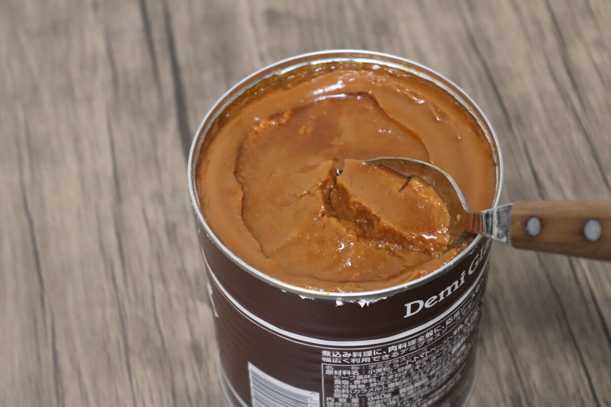 業務スーパーのデミグラスソース。840gと大容量で値段は420円です。