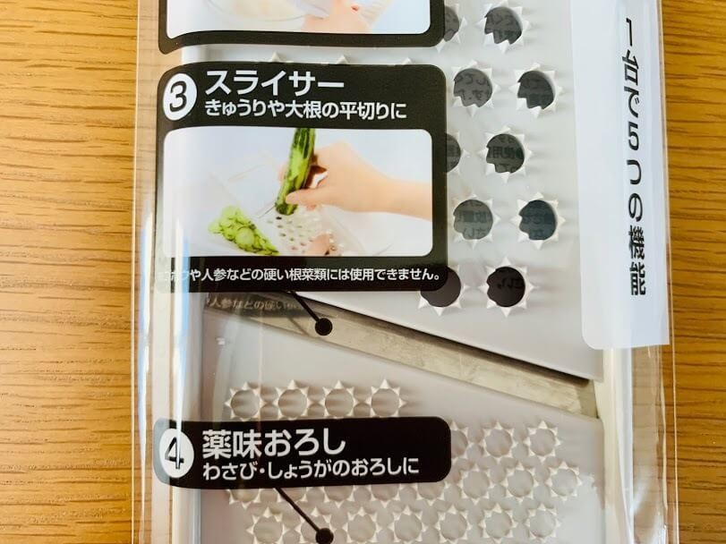 なんと目的の大根おろし用だけでなくスライサーや薬味おろしまでついている!しかも、