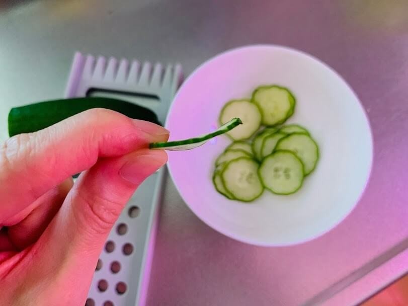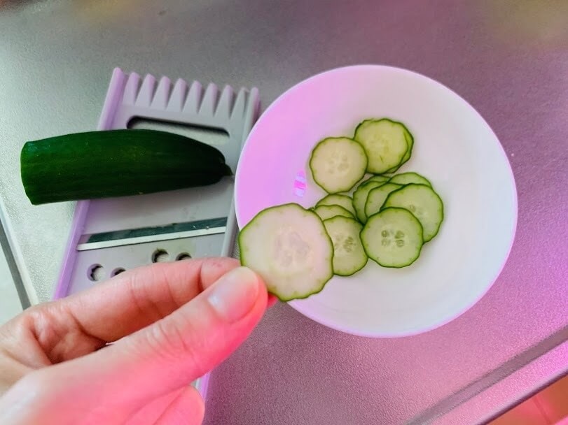 さっそくきゅうりをスライスしてみることに。今まで包丁で薄く輪切りにしていましたが、それより早いのでしょうか。