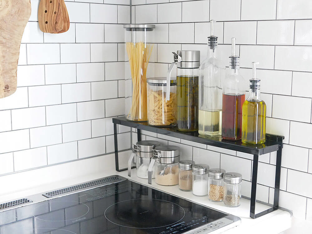 IHクッキングヒーターやビルトインタイプのコンロ周りでは、調味料などを置くラックとしても便利に使えます。