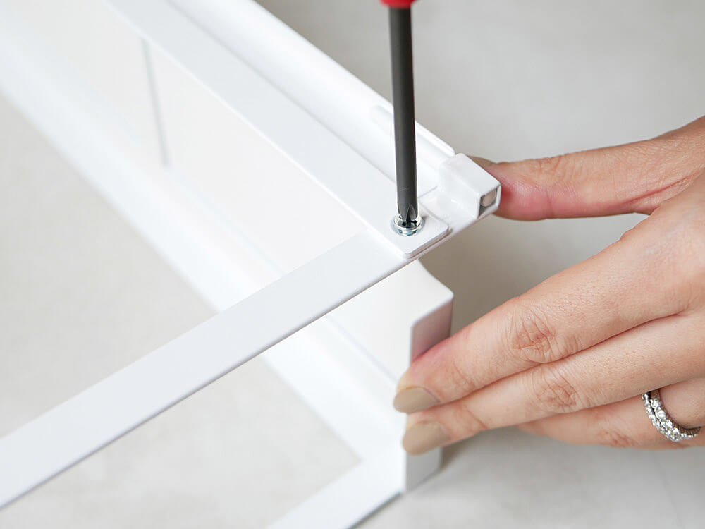 付属のねじで4か所固定するだけの簡単な組み立て式。5分程で組み立てられますよ。ネジが気になる場合は付属のネジ隠しシールもあります。