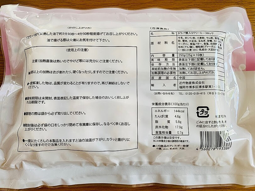 冷凍コロッケ(タラバ蟹入りクリーミーコロッケ) 199円(税込)リピ3回以上