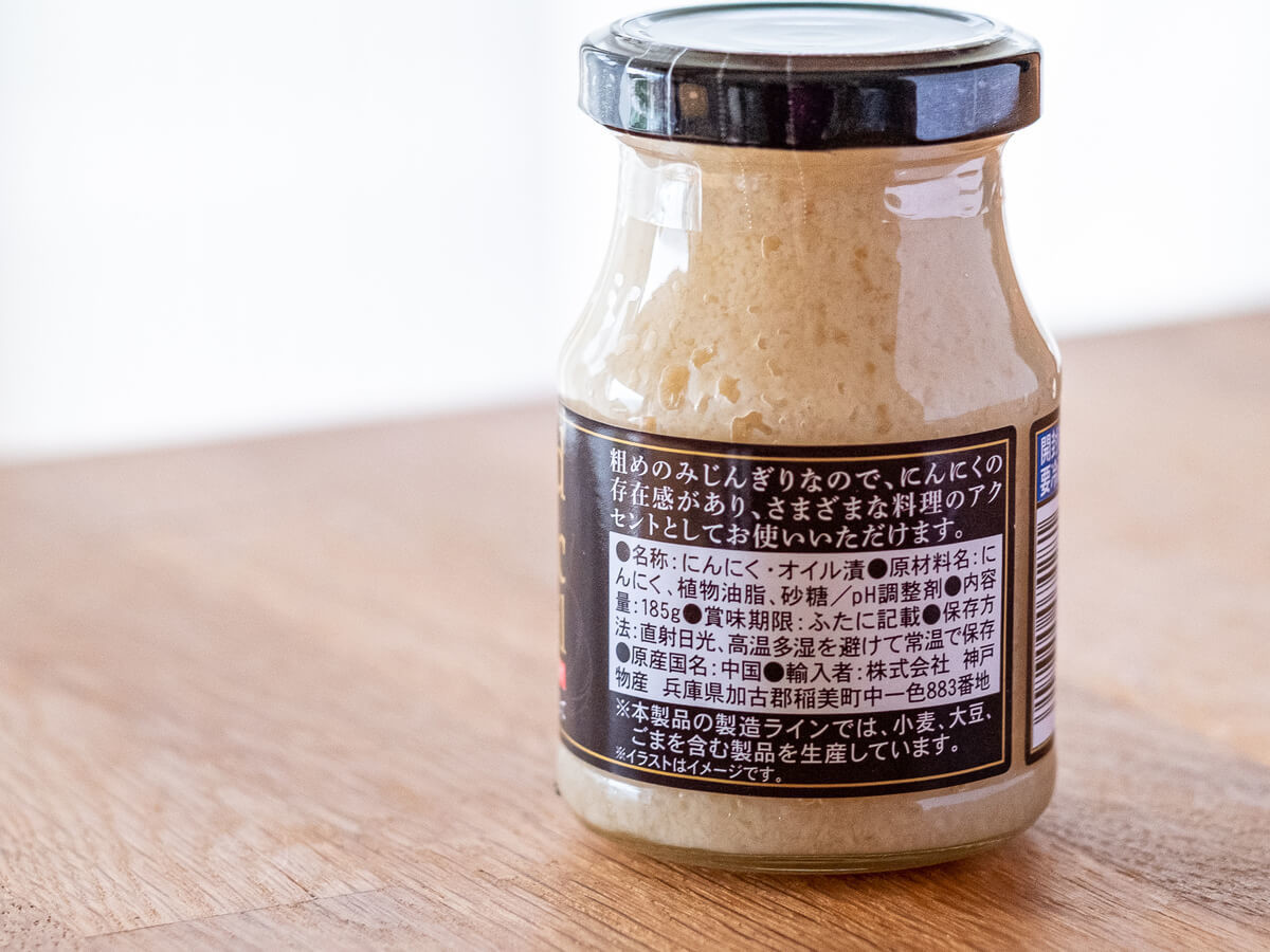 こちらが、業務スーパーで販売されている「刻みにんにくのオイル漬け」です。