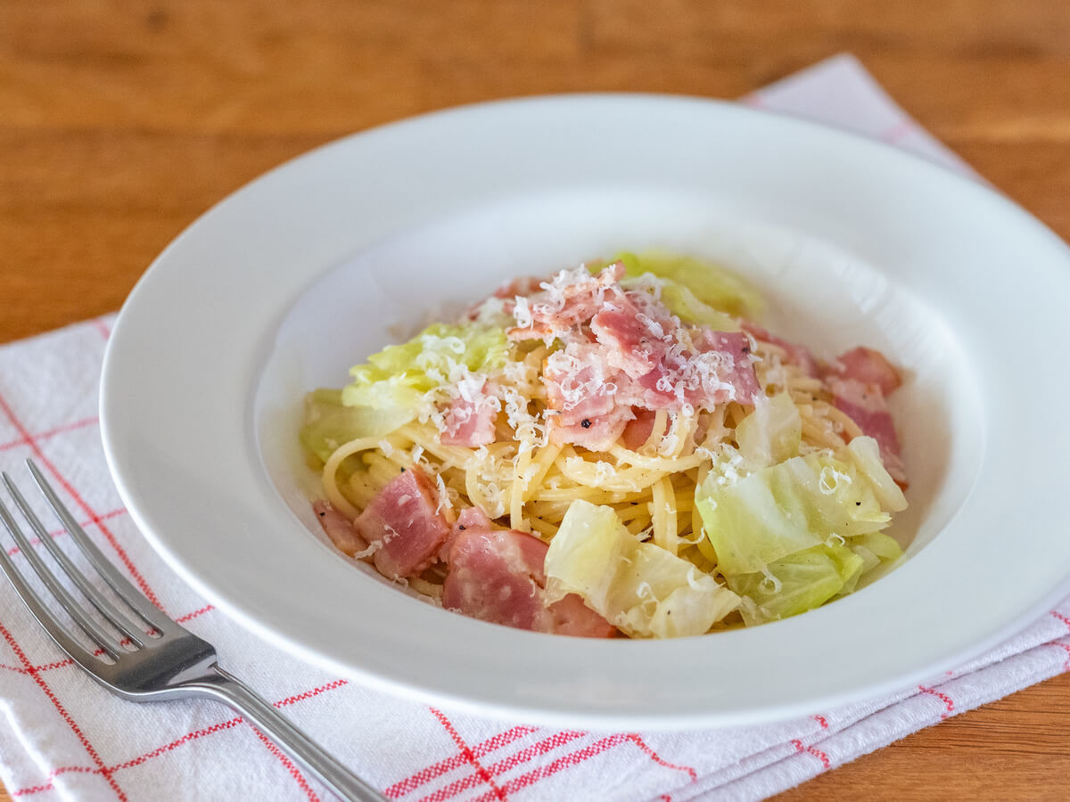 にんにくの風味とベーコンの塩気がたまらない、とてもおいしいパスタが簡単に完成です。