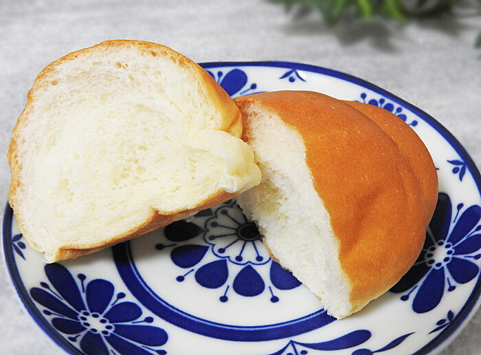 一般的なスーパーで販売されているバターロールよりはつややかさが足りませんが、見た目は普通のバターロールですね。
