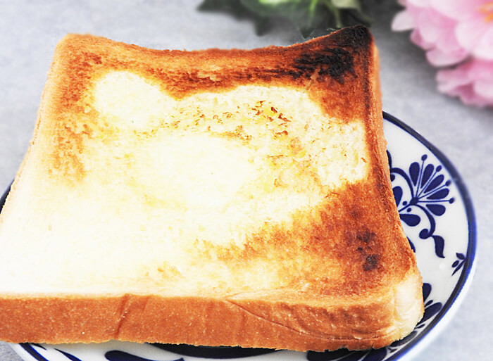 パンにバターを塗ってから、魚焼きグリルでじっくりと焼きました。4~5分程するとパンがこんがり焼き色がつきましたよ。