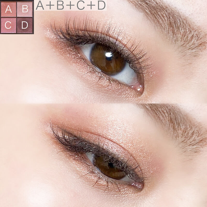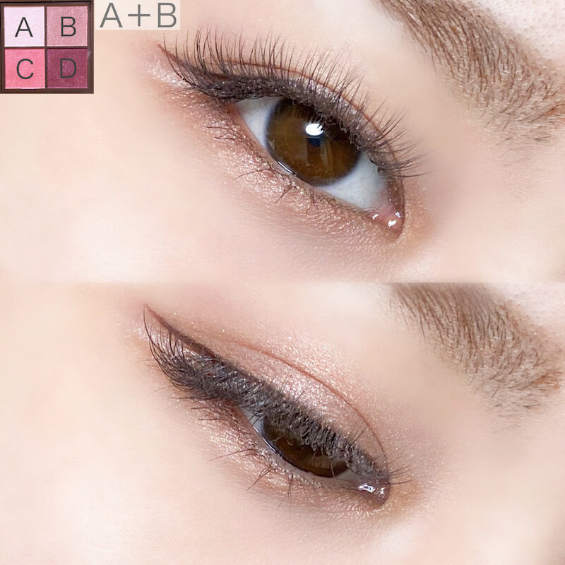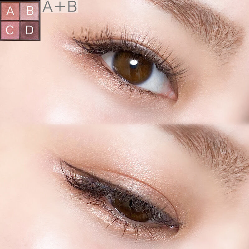 Bのカラーがベージュ寄りのピンクなので、肌なじみがキレイで、品のある目元に仕上げてくれます。