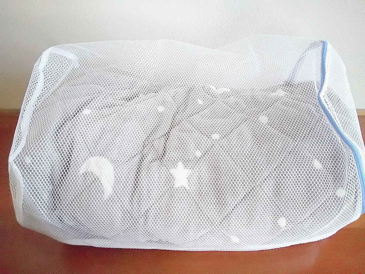 - あとは、洗濯表示に従って洗濯するだけ。脱水もネットに入れたまま行います。