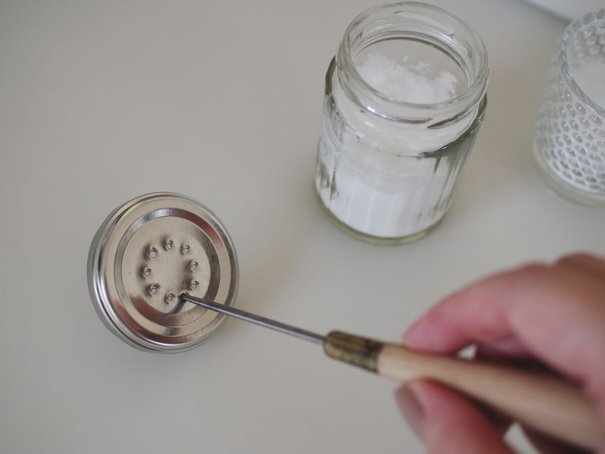 瓶に重曹を入れハッカ油を数滴垂らすと、虫除けになります。